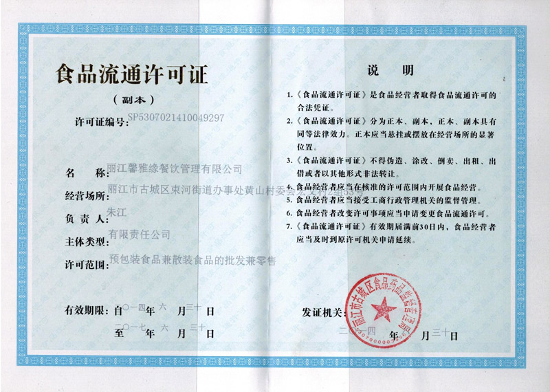 - 食品流通許可證